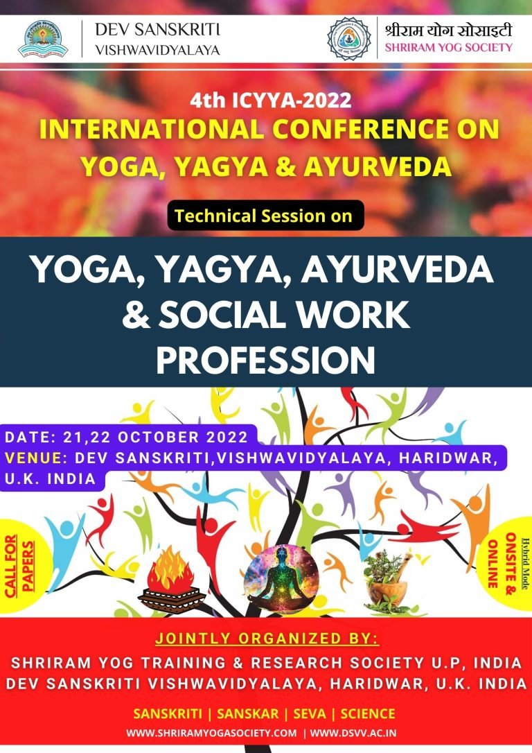 The discipline of Yoga, Yagya & Ayurveda has its basis thousands of years ago, long before the first religions or belief systems were born. Yoga is a spiritual discipline based on an extremely subtle science, which focuses on bringing harmony between mind & body. Ayurveda is the art and science of healthy living. Yagya – fire is a scientific method of subtilization of matter into energy and expanding its potential and positive effects on the surrounding atmosphere. All activities in the limitless expansion of the universe are said to have generated from a grand eternal Yajna(Yagya). Atharva Veda (9.15.14) describes Yagya as: Ayam Yajna Vishvasya Bhuvanasya Nabheehiâ implying Yagya is the fundamental process of manifestation of nature. ICYYA2022 aims to bring together scholars, researchers, scientists, yogis, spiritual gurus, professionals, and practitioners to exchange their experiences, thoughts, new ideas, and research results about all aspects of yoga, yagya , and ayurveda for holistic health and environment.